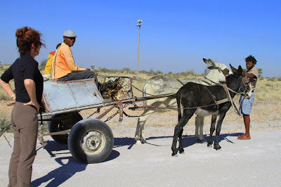Traveling a very VERY long dry dusty, bumpy road across the desert landscape of Namibia, we came across this man and his son...